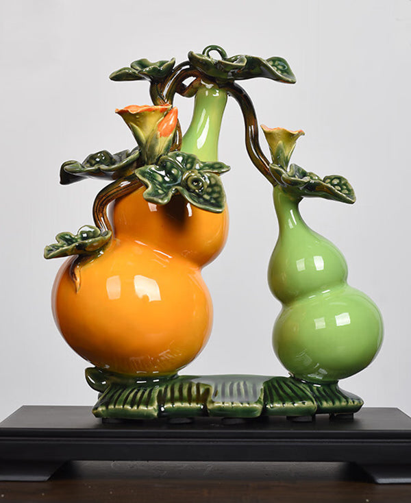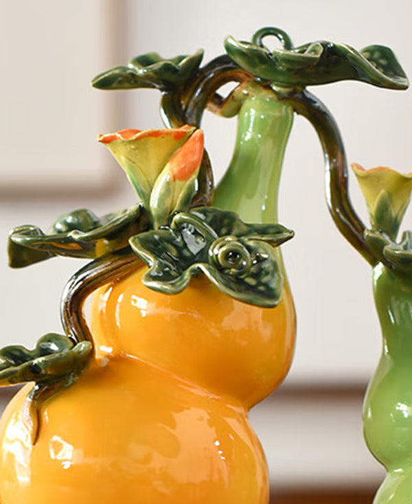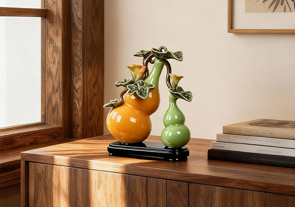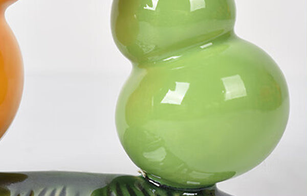 This ceramic gourd ornament features smooth lines, transparent glaze color, and rich symbolic meanings, making it an exquisite handicraft ideal for home decoration and a housewarming gift.