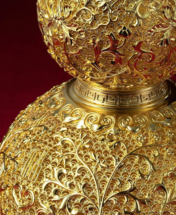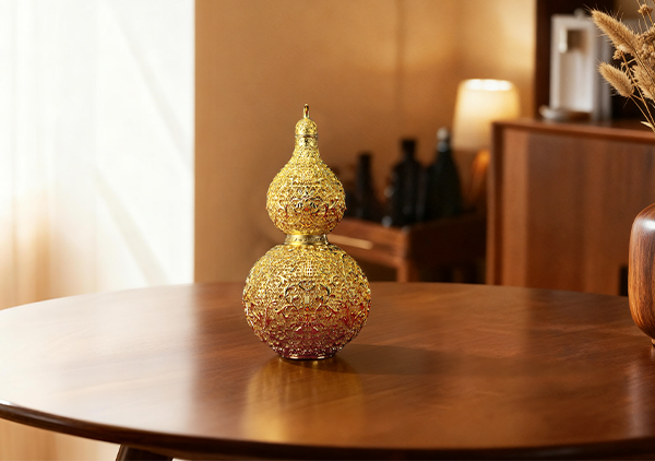 This gold-plated gourd stands out with its blend of age-old artisan filigree and modern sleekness.Contemporary look, it’s not just decor — it’s a distinctive focal point that brings artisan craft and elevated style to living rooms, studies, or offices, shaping the visual tone of any area.