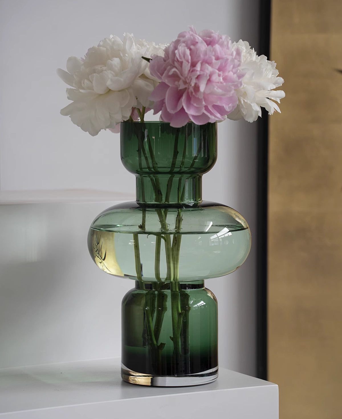 Green Gourd-Shaped Stacked Glass Vase - Modern Table Centerpiece