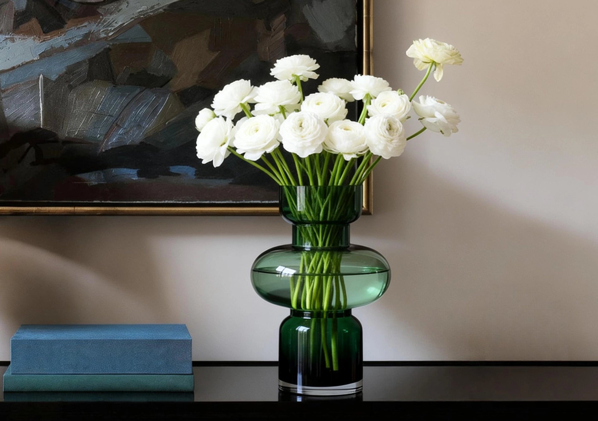 Located on a marble coffee table, a solid wood desk, or a sun-drenched windowsill, this vessel serves as an ideal choice for the setting. Its heavy base ensures stability even when supporting large green plants. Positioned simply, it functions not merely as a container but as a viewfinder for natural vitality; through that touch of translucent green, it instantly elevates the energy and transparency of the home environment.