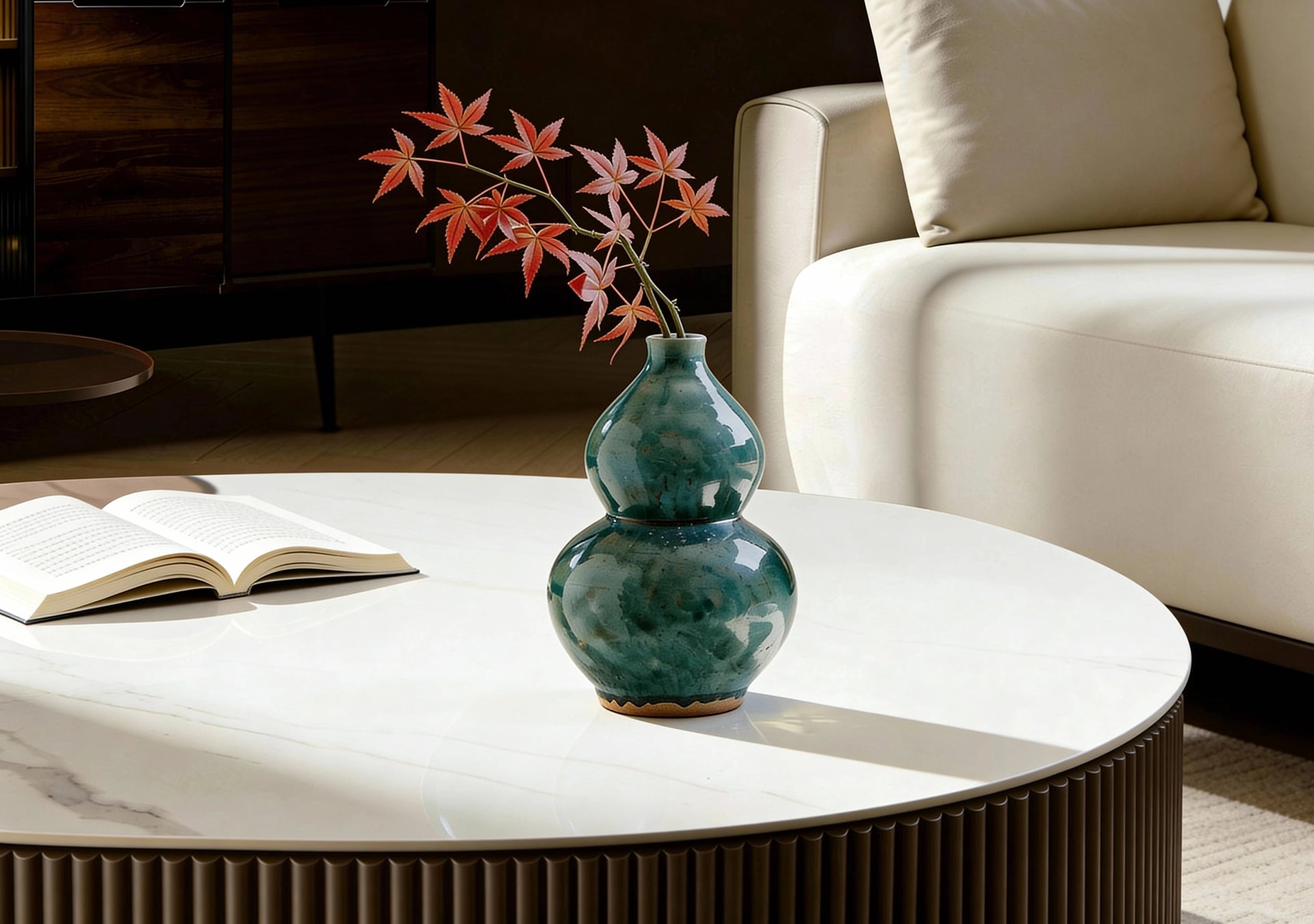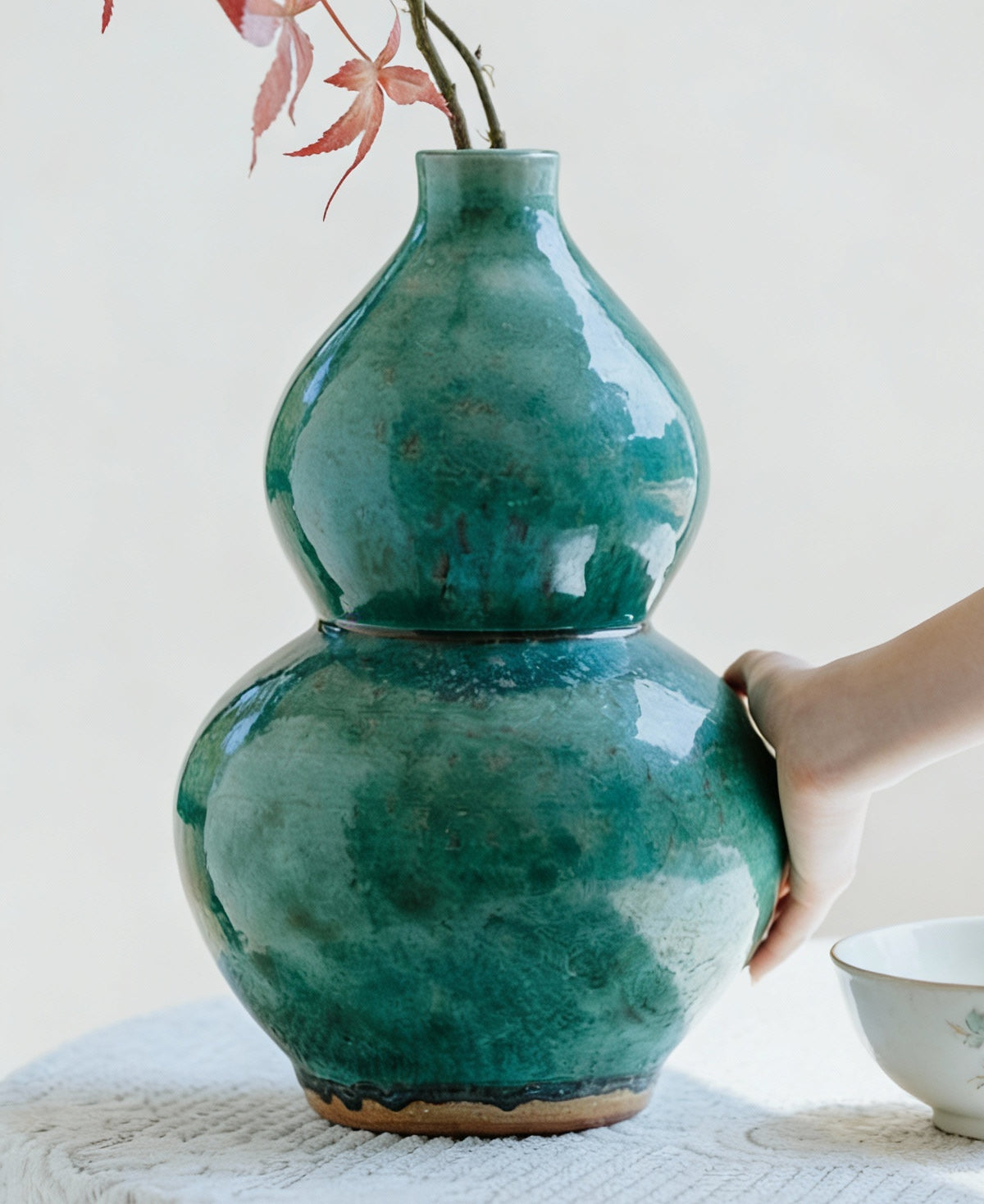 Made from selected Jingdezhen kaolin clay, each piece is hand-sculpted by artisans into a gourd form. Fired at over 900°C, the glaze flows and blends naturally in the kiln, creating the "same glaze, different hues" kiln-transformation effect. As the glaze cools and contracts, it cracks, forming a unique ice-crackle texture. Each piece is irreplicable due to this kiln alchemy—a spontaneous painting of fire, clay, and time.