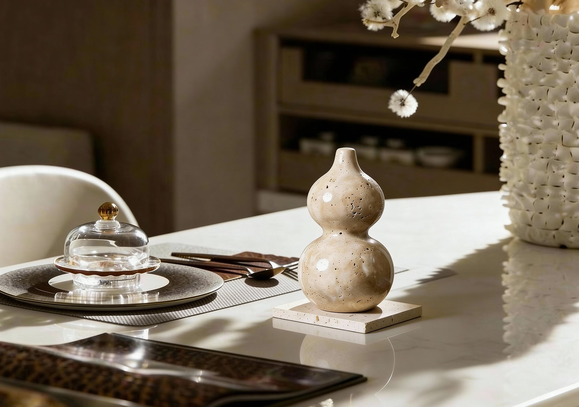 This decor piece is meticulously hand-carved from natural travertine marble. Natural travertine boasts a one-of-a-kind natural texture; after meticulous hand-polishing, its surface is smooth with a delicate touch, perfectly blending the original texture of natural stone with the meticulous warmth of handcraftsmanship.