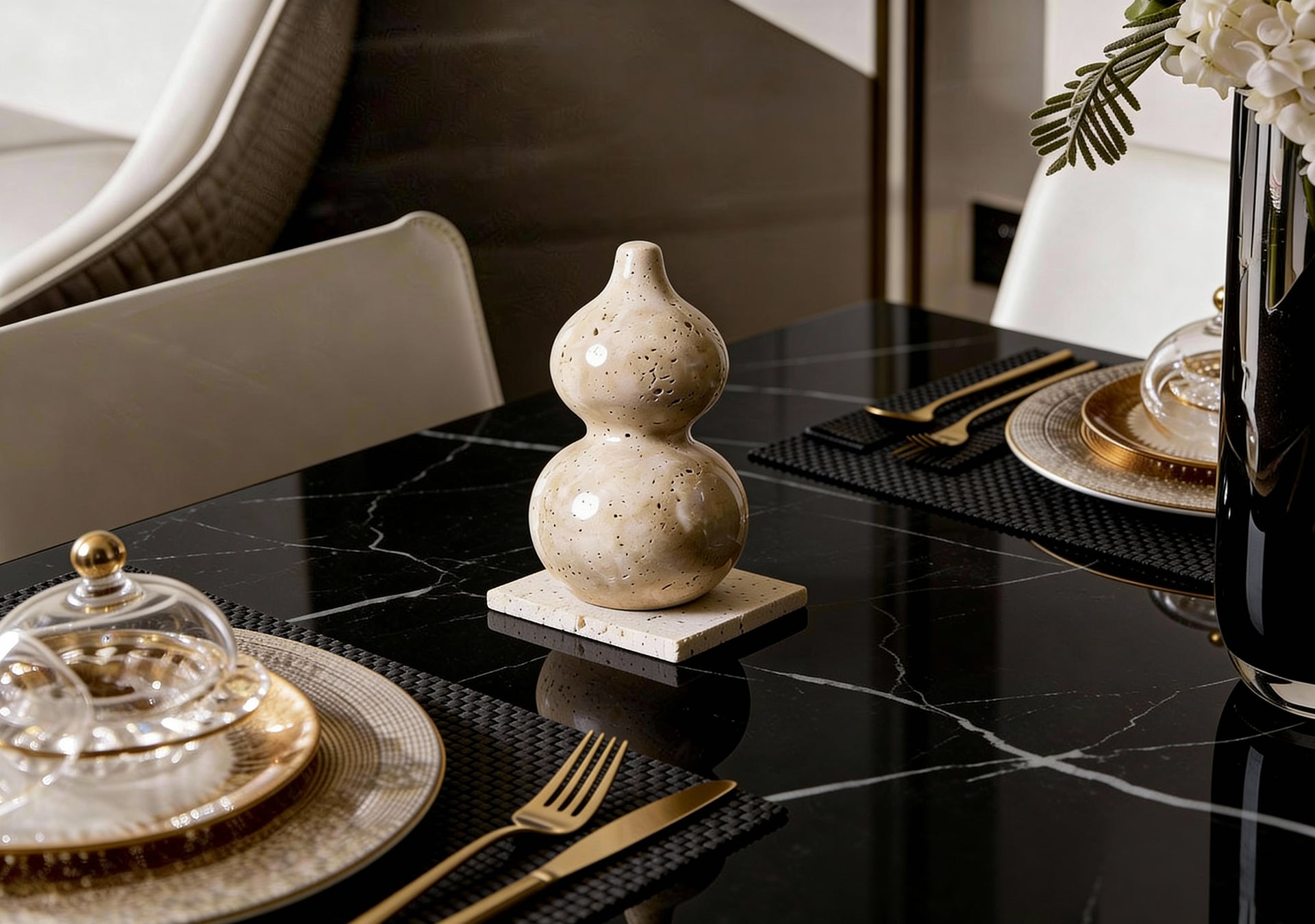 Crafted from natural travertine, each piece carries the stone’s distinct organic texture—a signature of timeless elegance. Meticulously hand‑polished into soft, rounded forms, it blends seamlessly into varied interior styles. The raw, innate beauty of the stone adds a layer of refined visual interest, effortlessly elevating the aesthetic tone of any space.