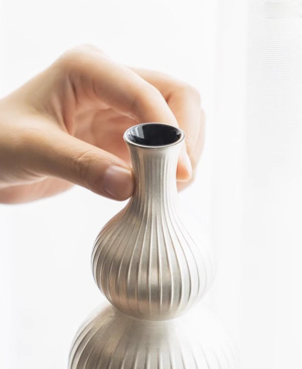 This minimalist gourd-shaped ceramic vase combines symbolic meaning with modern elegance. Handcrafted with a smooth, high-temperature fired glaze, it features a slender neck that beautifully gathers flower arrangements. Available in pure white and metallic finishes, its versatile design works as both a floral vase and a standalone decorative piece. The balanced form ensures stable handling, while the glossy surface allows for easy cleaning. Perfect for adding a touch of harmonious elegance to desks, shelves, or tea tables, it makes an artistic statement in any mindful living space.