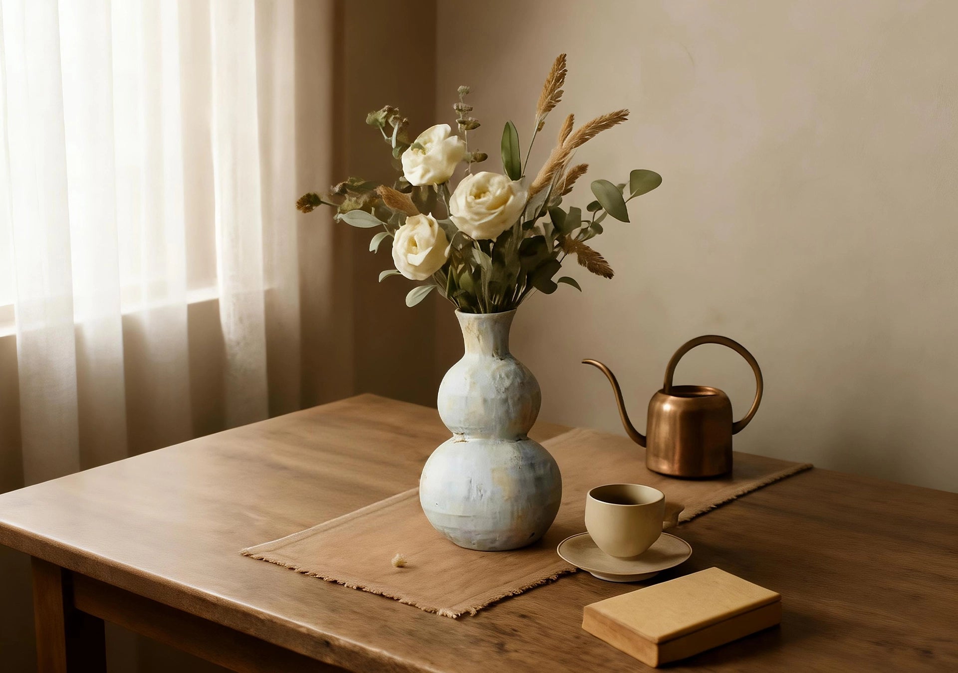 Selected from premium kaolin clay, this vessel is meticulously handcrafted by experienced ceramic artisans. Rejecting industrial smoothness and perfection, it intentionally preserves the coarse tactile feel of earth and the authentic marks of hand-throwing. Undergoing a complex technological process and high-temperature firing, the body reveals natural mineral hues and mottled textures. Every piece possesses a unique, primitive style that stands alone.